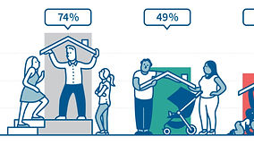 The wealth gap and home ownership rates for different populations in Chicago are explored in these illustrations integrated with simple data graphics.